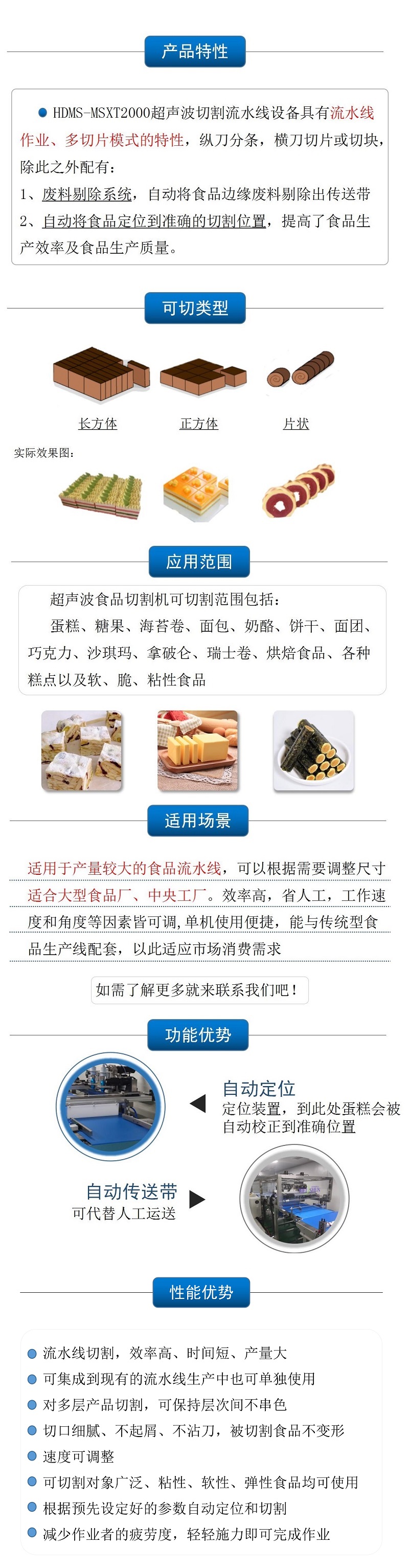 該設(shè)備配備雙把超聲波刀片,既可切方蛋糕,也可同時切兩個圓蛋糕,效率更高 |